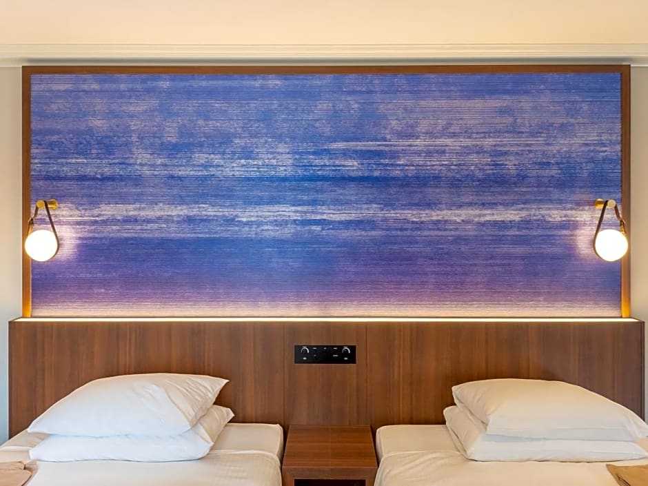 The spacious twin room offers air conditioning, a coffee machine, a terrace with garden views as well as a private bathroom featuring a bath. The unit offers 2 beds.